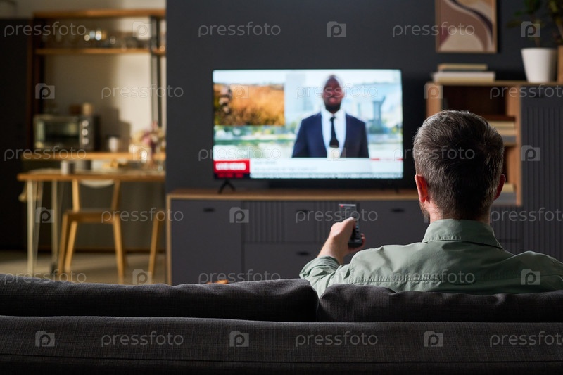 Человек смотрит новости, транслируемые по телевизору дома