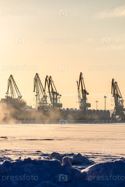 Новый берег и краны в порту города Кандалакша сейчас