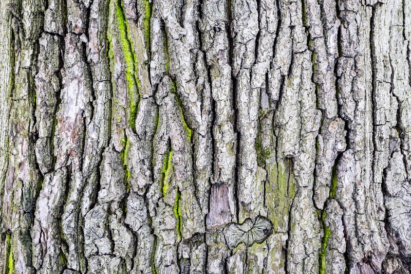 Естественная древесная кора старого дуба с зеленым мхом