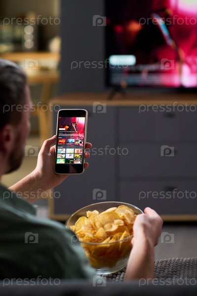 Мужчина средних лет смотрит телевизор во время просмотра потокового приложения