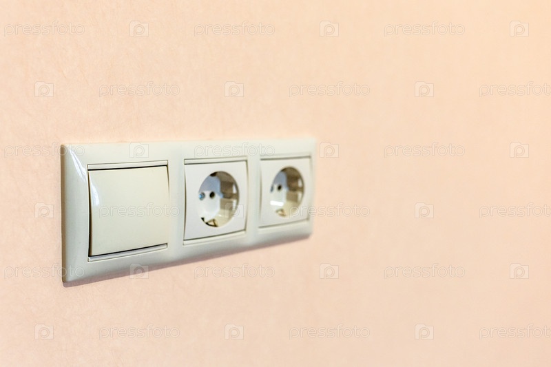 Электрические розетки на светло-коричневой покрашенной стене