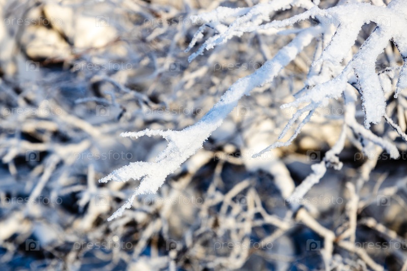Замороженные ветви деревьев закрываются в солнечный зимний день
