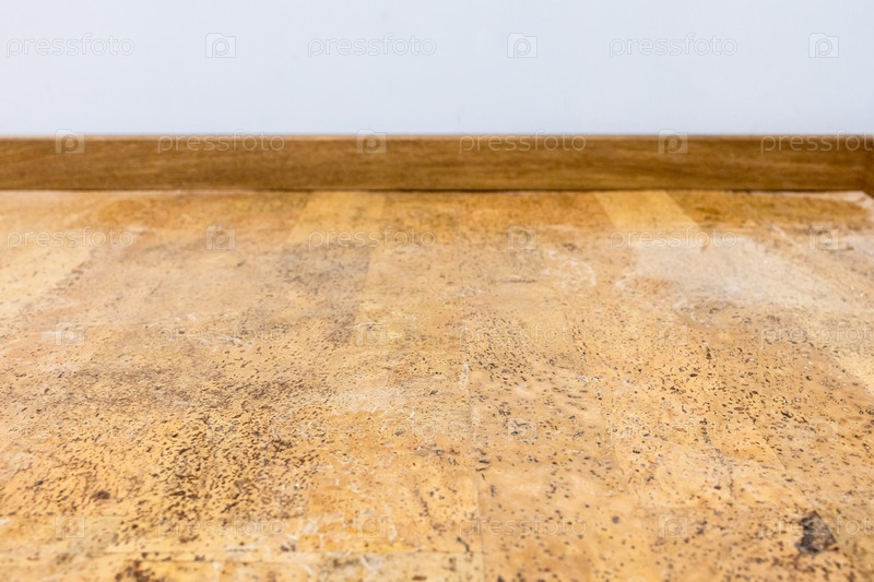 Поверхность нового коричневого пробкового напольного покрытия with baseboard