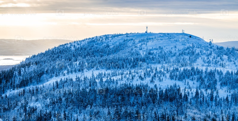 Снежный холм возле города Кандалакша в зимний сумерки
