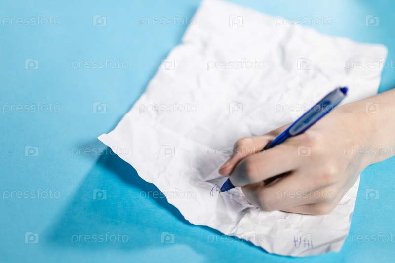 Рукой писал ручкой на свернутом листе бумаги
