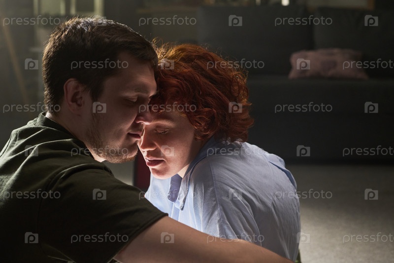 Молодой человек утешает молодую женщину во время эмоционального момента