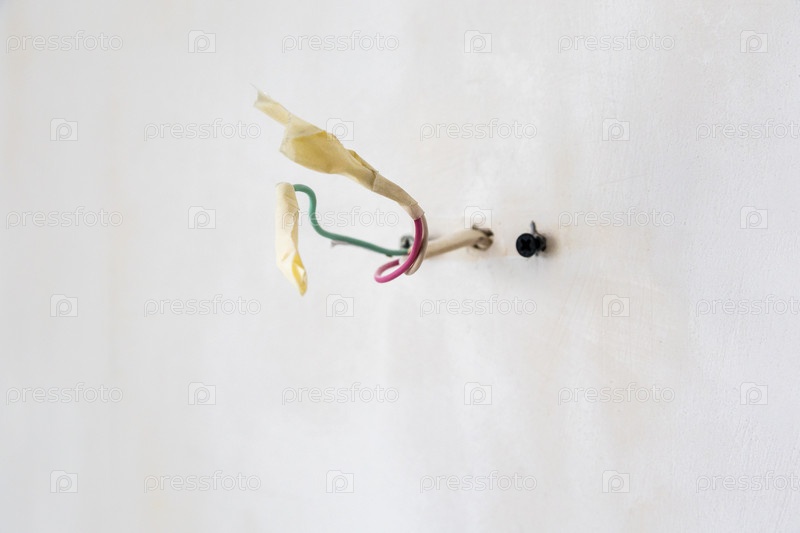 Изолированные провода крупный план в штукатурной стене