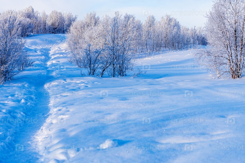 Пешеходная тропа в снегу на вершине холма Зеленой, Мурманск