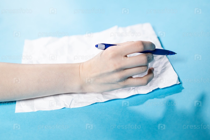 Рукой ручкой на свернутом листе бумаги Close-up