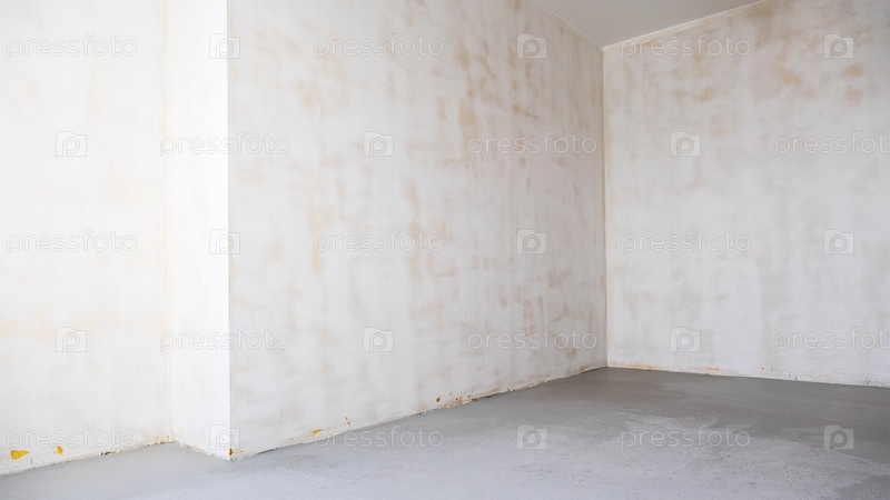 Вид на очищенную стену, самонивелирующийся пол в комнате