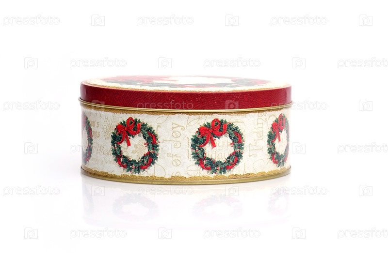 Подарочный ящик с рождественским венком, изолированным на белом фоне