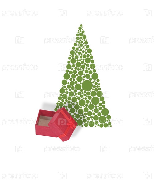 Рождественская открытка с рождественской елкой и подарком (современный векторный макет)