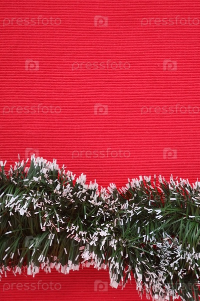 Шаблон для Рождественские поздравления: зеленая рождественская гирлянда на красном фоне