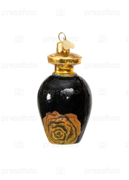 Рождественские игрушки в виде бутылки парфюма, изолированной на белом фоне