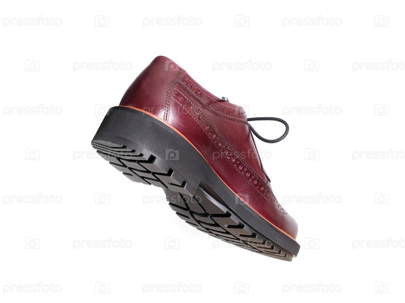 Темная вишневая кожа оксфордские ботинки с перфорированными деталями, изолированы на белом цвете и готовы к вырезу