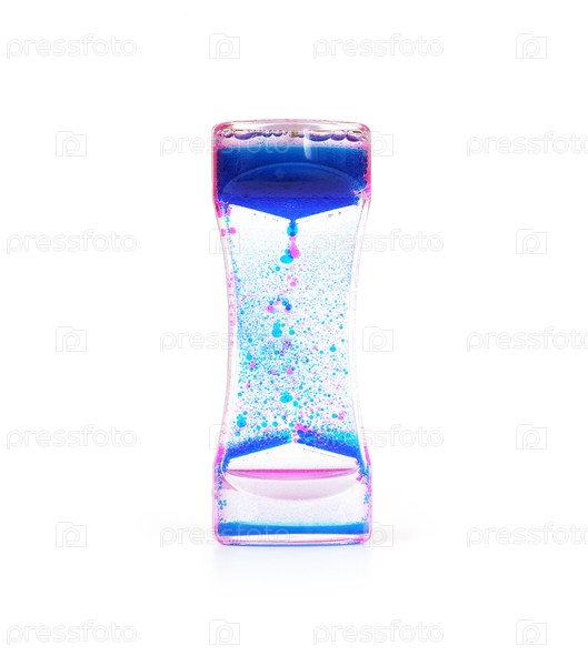 Водные часы (клепсидра) с цветными каплями, изолированными на белом фоне