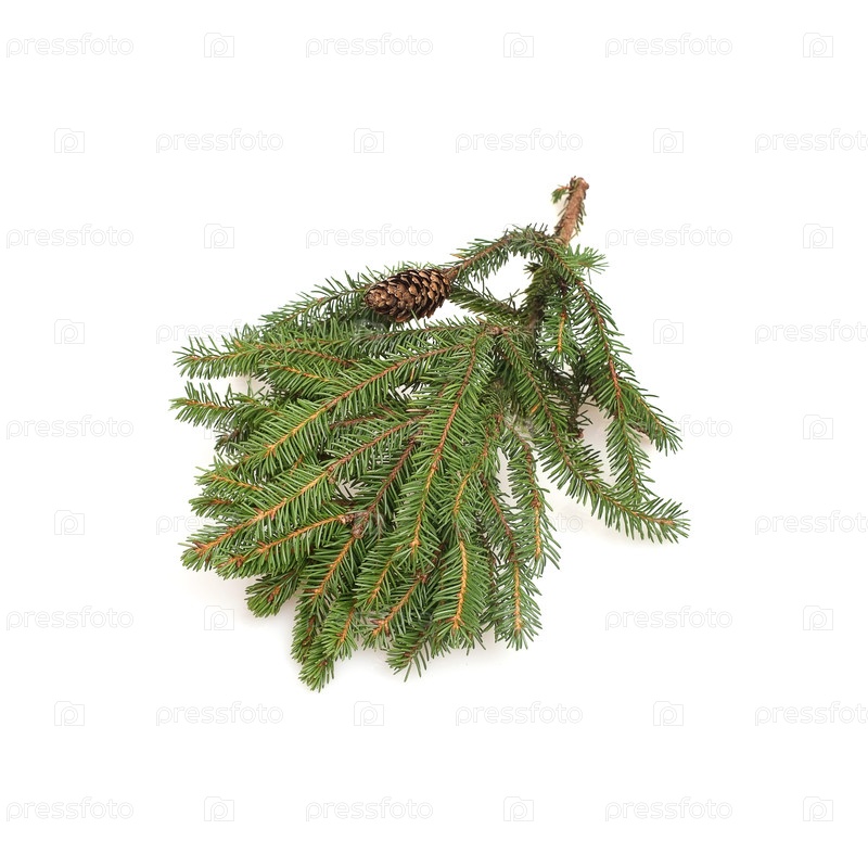 Ветка рождественской елки изолирована на белом фоне для создания поздравительных открыток, плакатов и баннеров