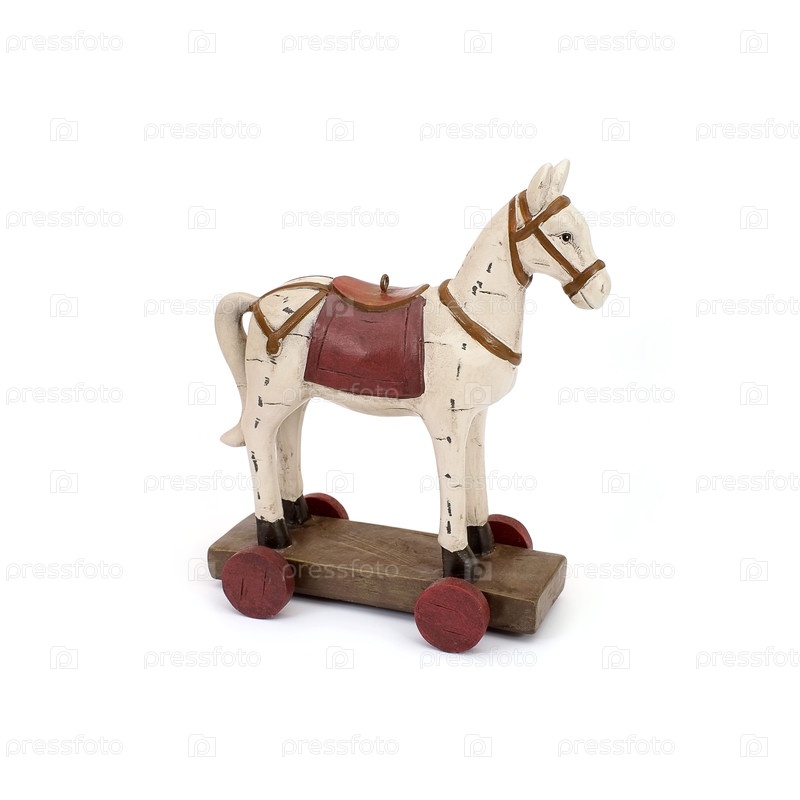 Лошадиные кресла на колесах (игрушка для рождественской елки) изолированы на белом фоне