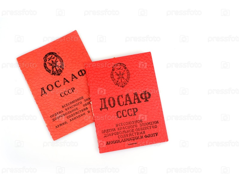 Членская карточка спортивно-технической организации советской обороны (DOSAAF) изолирована на белом фоне