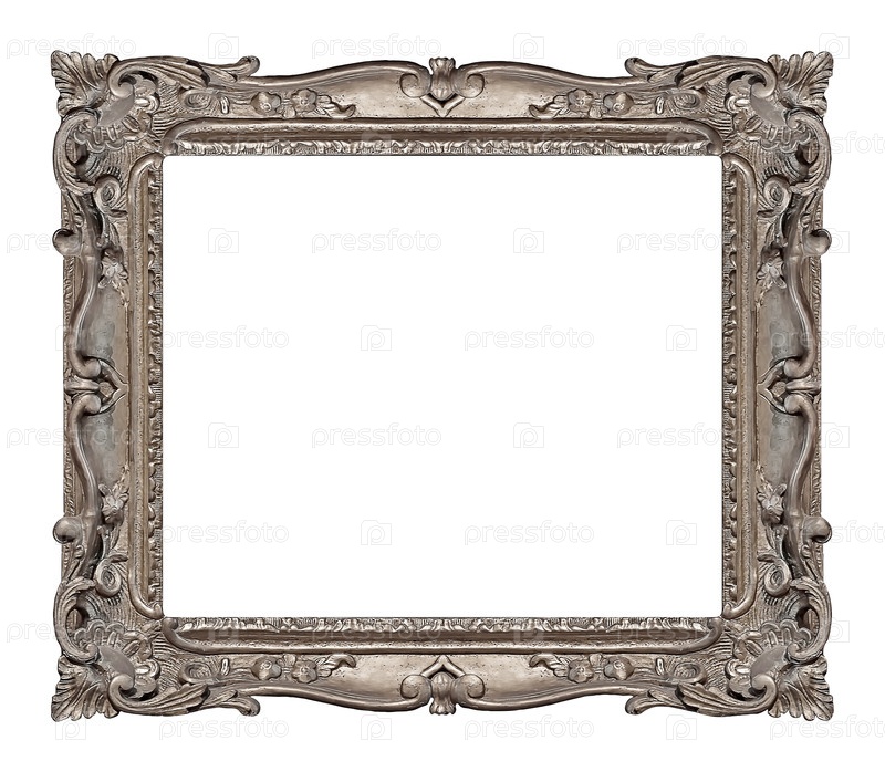 Серебряная рама для картин, зеркал или изолированной фотографии на белом фоне
