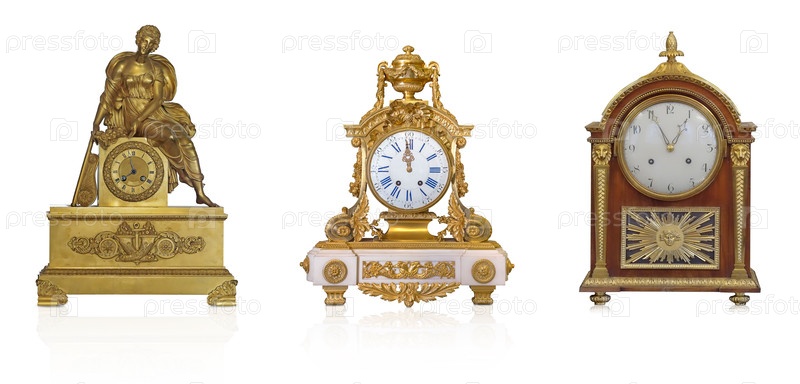 Набор настольных часов, изолированных на белом фоне