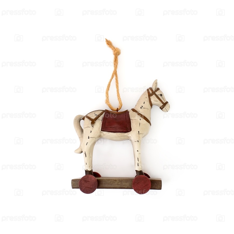 Лошадиные кресла на колесах (игрушка для рождественской елки) изолированы на белом фоне