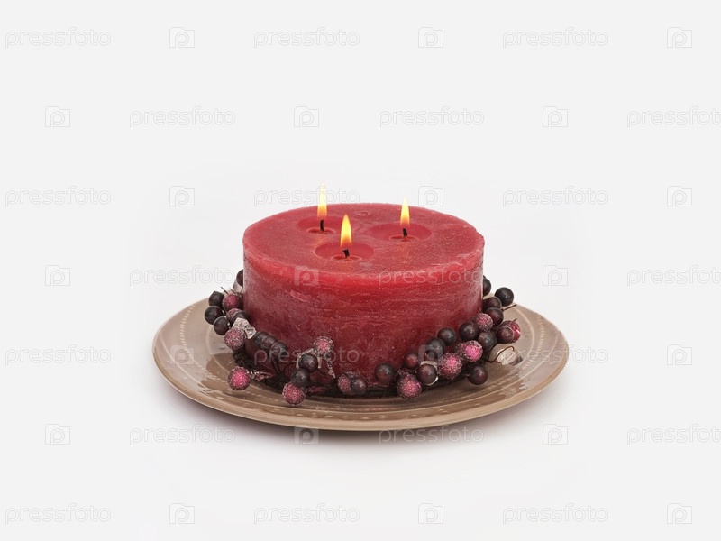 Большая свеча на керамической пластине, изолированной на белом фоне