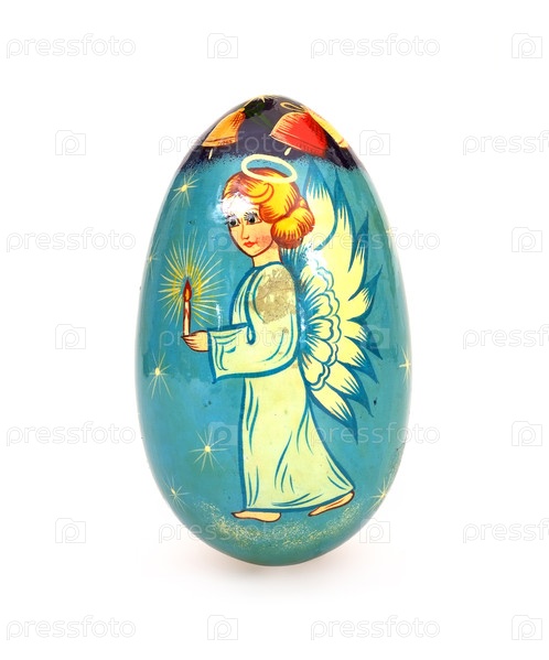 Рождественское деревянное яйцо, нарисованное вручную и изолированное на белом фоне
