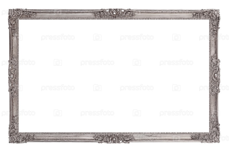 Панорамная серебряная рама для картин, зеркал или изолированной фотографии на белом фоне