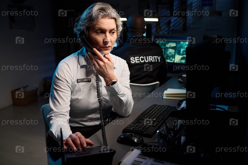 Кавказская женщина среднего возраста, управляющая экстренным звонком при наблюдении за слежкой