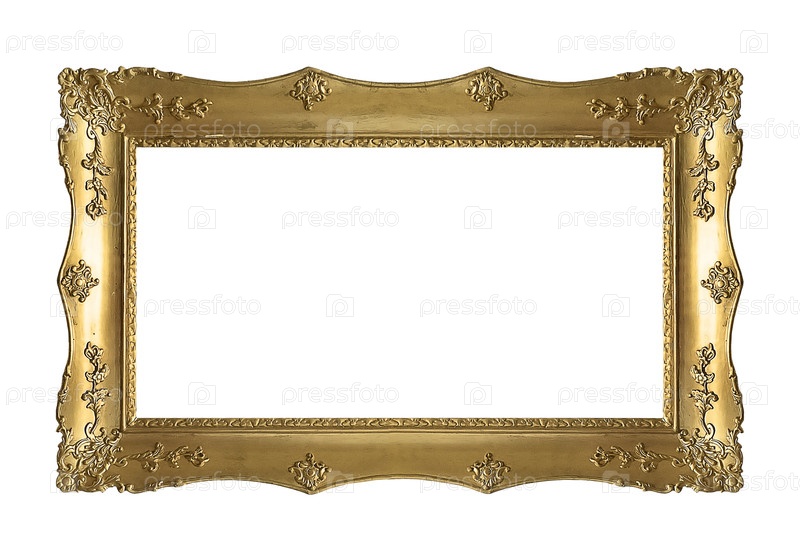 Золотая панорамная рамка для картин, зеркал или фото, изолированная на белом фоне