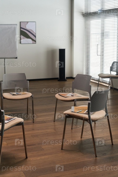 Пустой конференц-зал показывает стулья, устроенные для деловой встречи