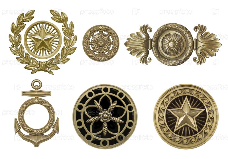 Набор золотых декоративных элементов, изолированных на белом фоне