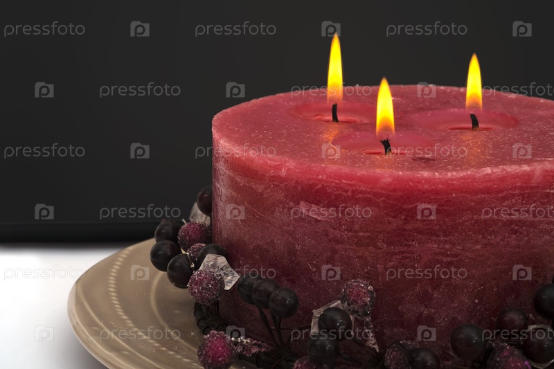 Большая свеча на керамической пластине, изолированной на бело-черном фоне