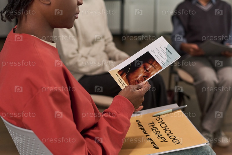 Молодая чернокожая женщина, посещающая сессию группы поддержки психологической терапии