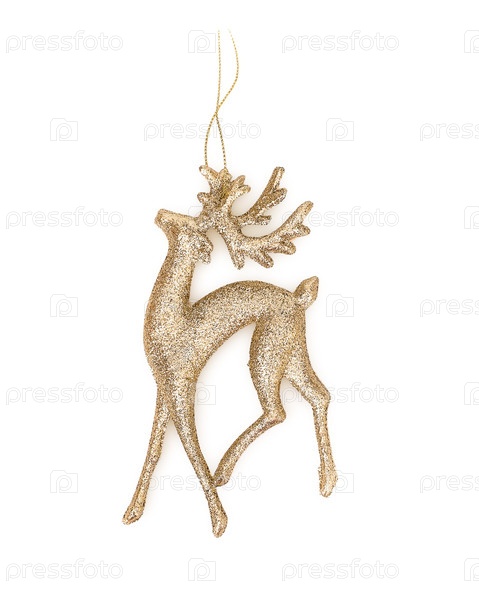 Рождественская елка игрушка "Золотой олень" изолирована на белом фоне