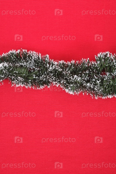 Шаблон для Рождественские поздравления: зеленая рождественская гирлянда на красном фоне