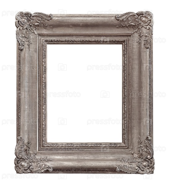 Серебряная рама для картин, зеркал или изолированной фотографии на белом фоне
