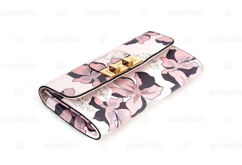Кожаный кошелек с красивым цветочным принтом, изолированным на белом фоне