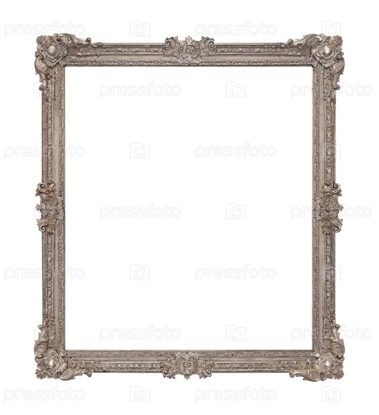 Серебряная рама для картин, зеркал или фотографии изолированной на белом фоне