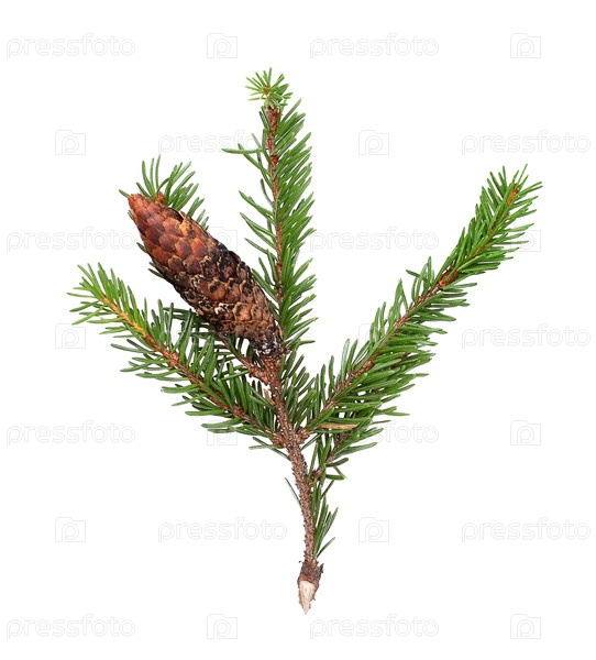 Ветка рождественской елки изолирована на белом фоне для создания поздравительных открыток, плакатов и баннеров
