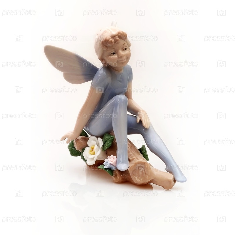 Сувенирная фарфоровая статуэтка Эльф изолирован на белом фоне