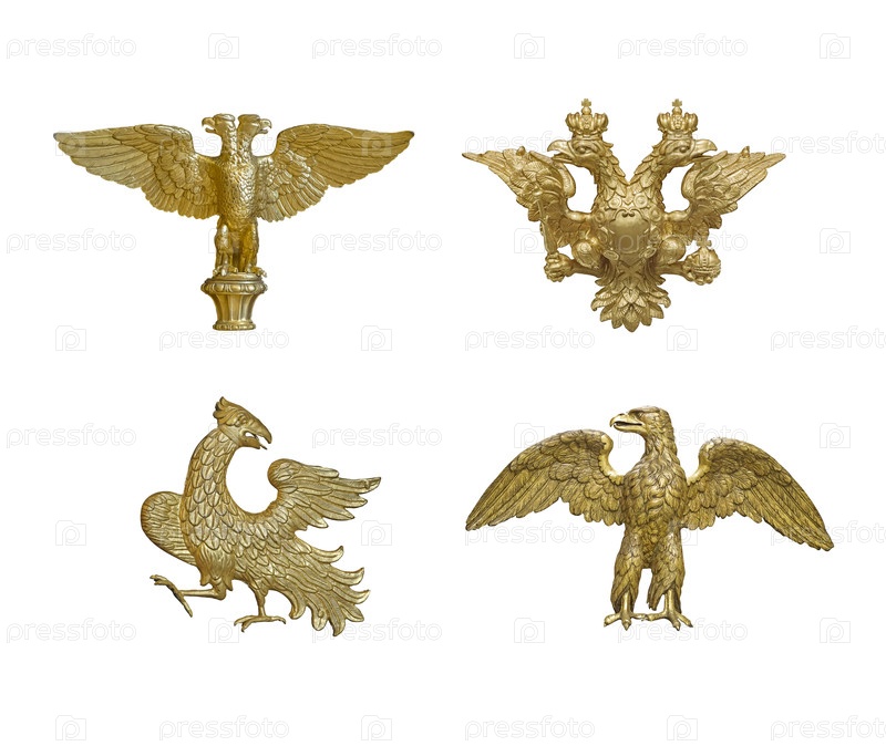 Золотой герб орлы изолированы на белом фоне