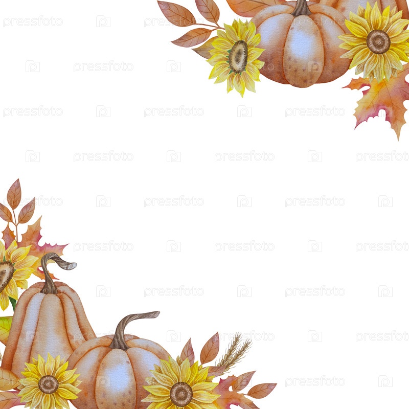 Коллекция осенних элементов. Осенние композиции с тыквами, кленовыми листьями, подсолнечником, ржи. Акварельная иллюстрация урожая Дня благодарения. Ручной рисунок для дизайна, печати, Хэллоуина, дня благодарения, социальных сетей