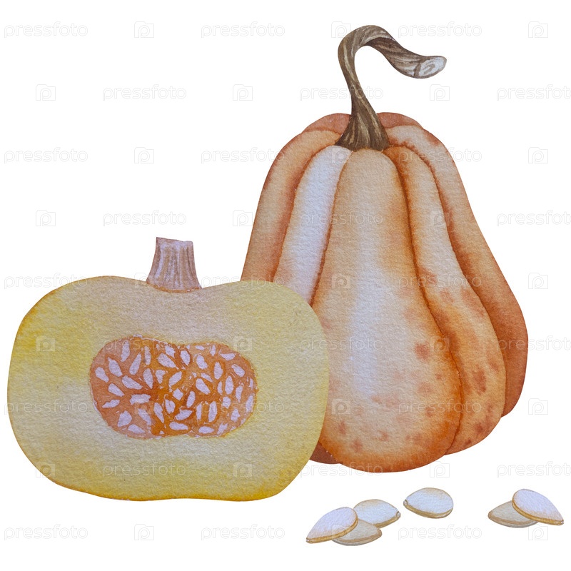 Коллекция осенних элементов. Осенние композиции с тыквами, кленовыми листьями, подсолнечником, ржи. Акварельная иллюстрация урожая Дня благодарения. Ручной рисунок для дизайна, печати, Хэллоуина, дня благодарения, социальных сетей