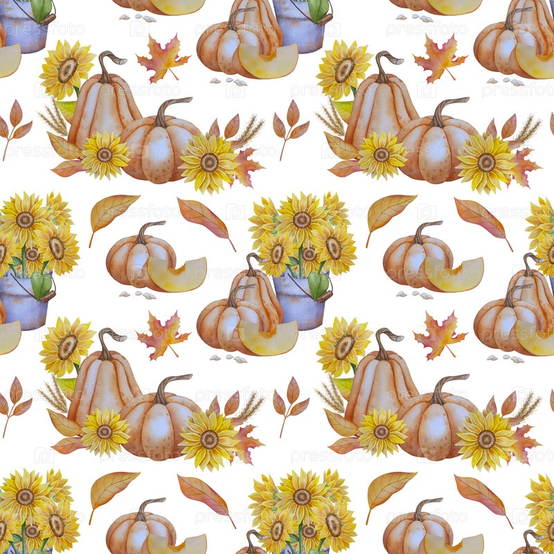 Коллекция осенних элементов. Осенние композиции с тыквами, кленовыми листьями, подсолнечником, ржи. Акварельная иллюстрация урожая Дня благодарения. Ручной рисунок для дизайна, печати, Хэллоуина, дня благодарения, социальных сетей