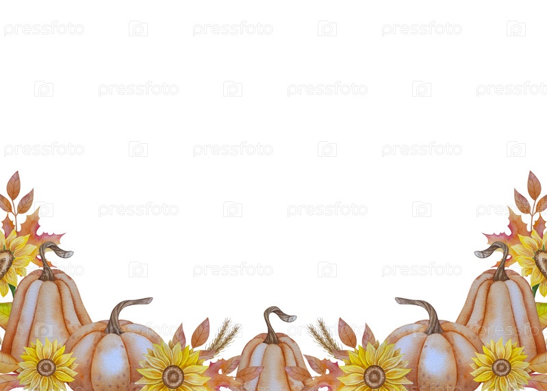 Коллекция осенних элементов. Осенние композиции с тыквами, кленовыми листьями, подсолнечником, ржи. Акварельная иллюстрация урожая Дня благодарения. Ручной рисунок для дизайна, печати, Хэллоуина, дня благодарения, социальных сетей