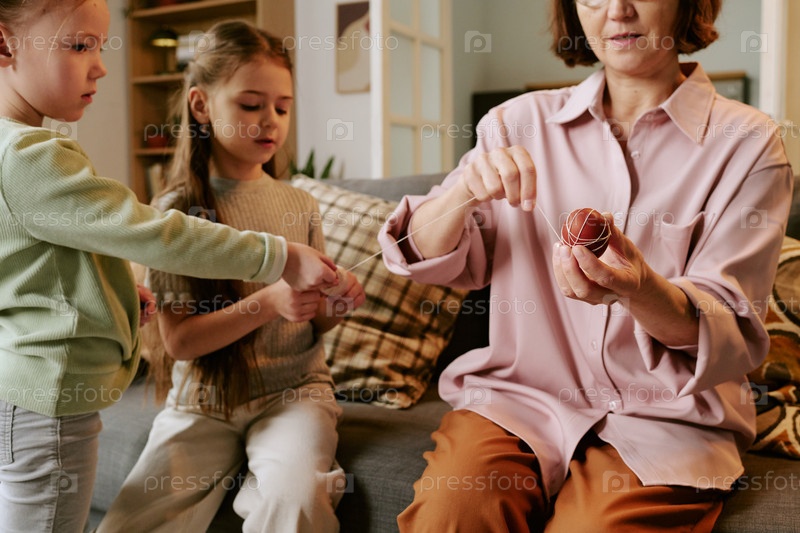 Женщина среднего возраста преподает двум детям ремесленную деятельность в помещении