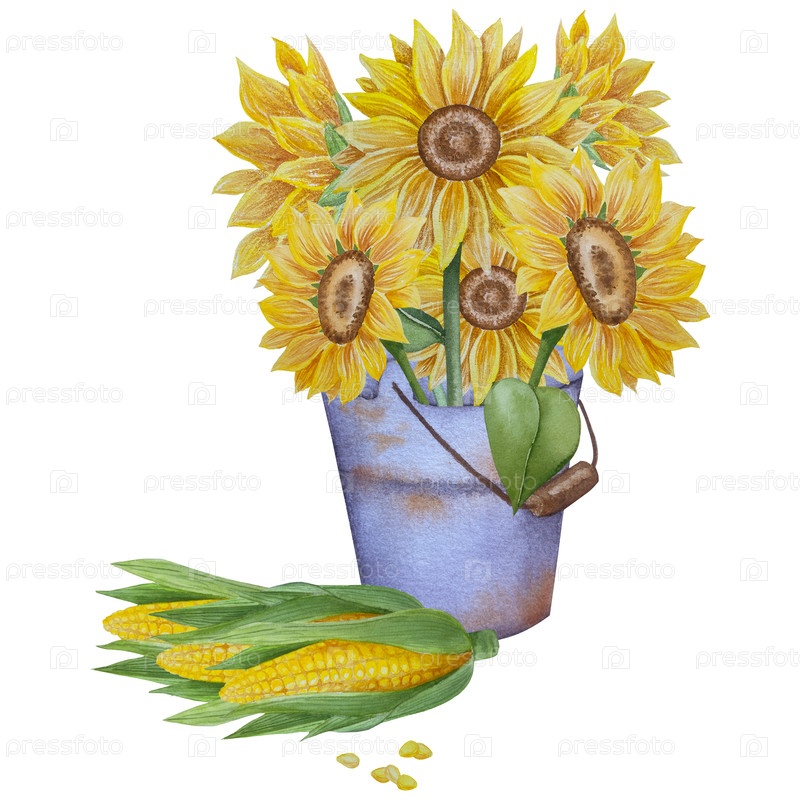 Коллекция осенних элементов. Осенние композиции с тыквами, кленовыми листьями, подсолнечником, ржи. Акварельная иллюстрация урожая Дня благодарения. Ручной рисунок для дизайна, печати, Хэллоуина, дня благодарения, социальных сетей