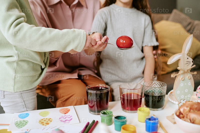 Два ребенка красят пасхальные яйца вместе во время праздничной активности